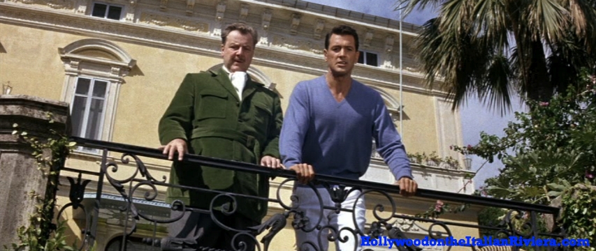 Having driven through Portofino, Robert Talbot (Rock Hudson) finally arrives at his Villa. And What a Villa it is! As Robert puts it to his majordomo Maurice (Walter Slezac), “the view from the terrace is quite breathtaking”. Indeed it is and not only the director will make good use of it in the movie, but it would also feature prominently on posters and lobby cards across the world. The view? Santa Margherita-Ligure!