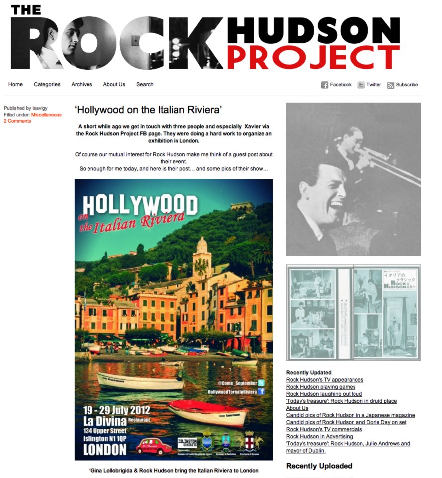 The Rock Hudson Project – Guest post: The ladies behind this amazing blog where Rock Hudson fans can, and will, find everything they have ever wanted to know about Rock, kindly invited us to write a post about the exhibition. In fact, that was our first post ever!
